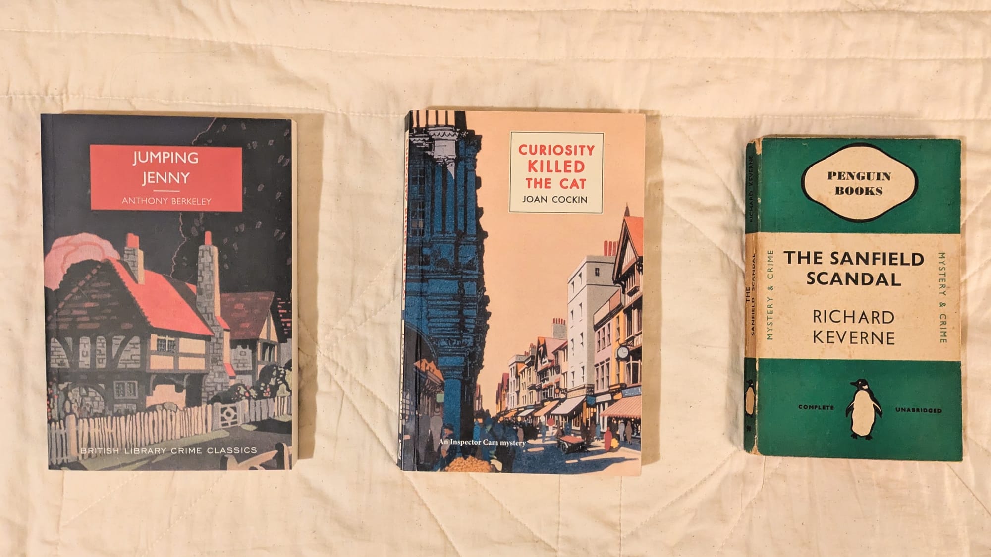 Jumping Jenny by Anthony Berkeley from 1933 is an unpleasant but deeply fascinating novel that I'll be talking more about in a history-focused episode towards the end of February. It focuses on Berkeley's regular amateur sleuth, crime writer Roger Sheringham, at a country house fancy dress party where a woman ends up hanged on a gibbet that was meant to be part of the decorations. Up to this point, the setup could have been conceived by any 1930s crime writer. Only Berkeley would have thought to make Sheringham a deliberate accessory after the fact, in the sense that he tries to "clean up" the scene to protect a friend, and then spends the rest of the novel trying to evade the police's efforts to get at the truth. It's a really compelling formal experiment that merges the "howdunnit" with the "whodunnit" and, although not exactly comfortable reading, I would recommend it if you're interested in crime fiction innovation.